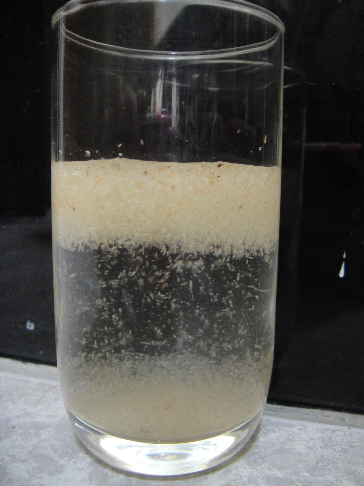 一開始的時後,我怕她會害怕沒有味道的滑溜溜小果凍的感覺,所以把洋車前子加在5度c的柳橙汁裡,偽裝成果肉大放送的果汁,很順利的讓她喝下去,還讓她開心得覺得今天的果汁果肉特別多。